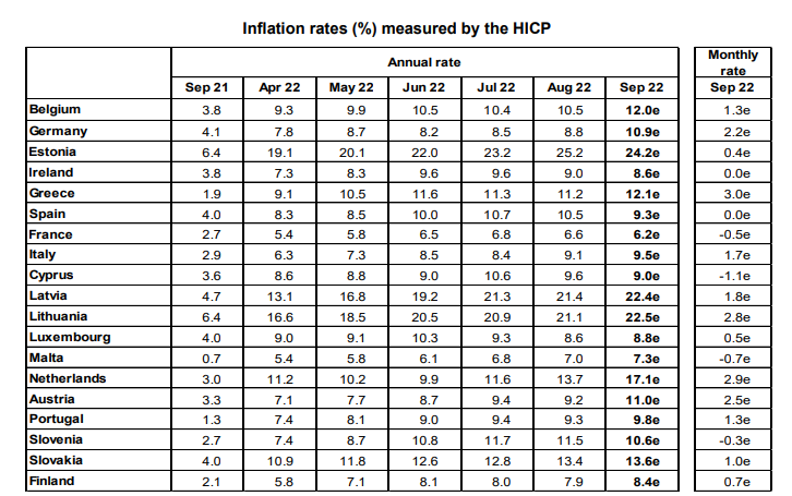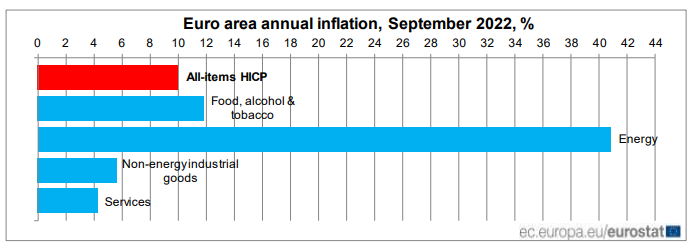 这使得欧元区通胀率同比涨幅录得10%,刷新历史新高,并显著高于市场预测的9.7%和8月的9.1%。