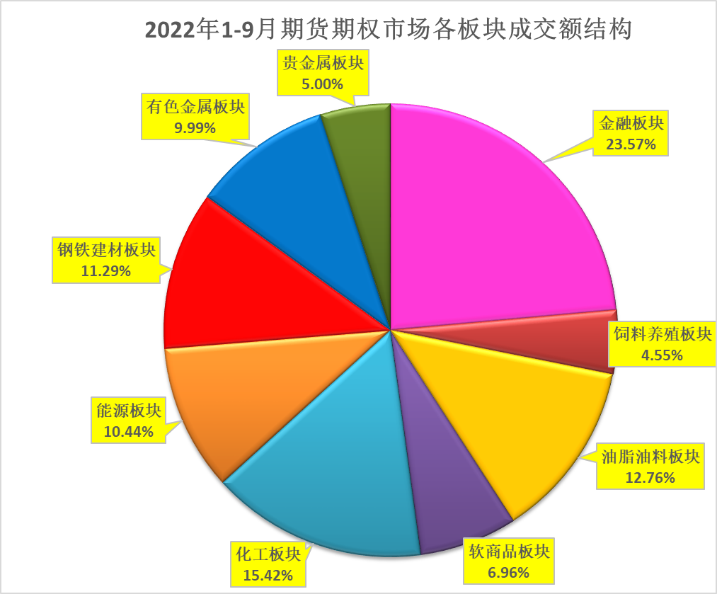图:2022年1-9月期货期权市场九大板块成交额占比统计