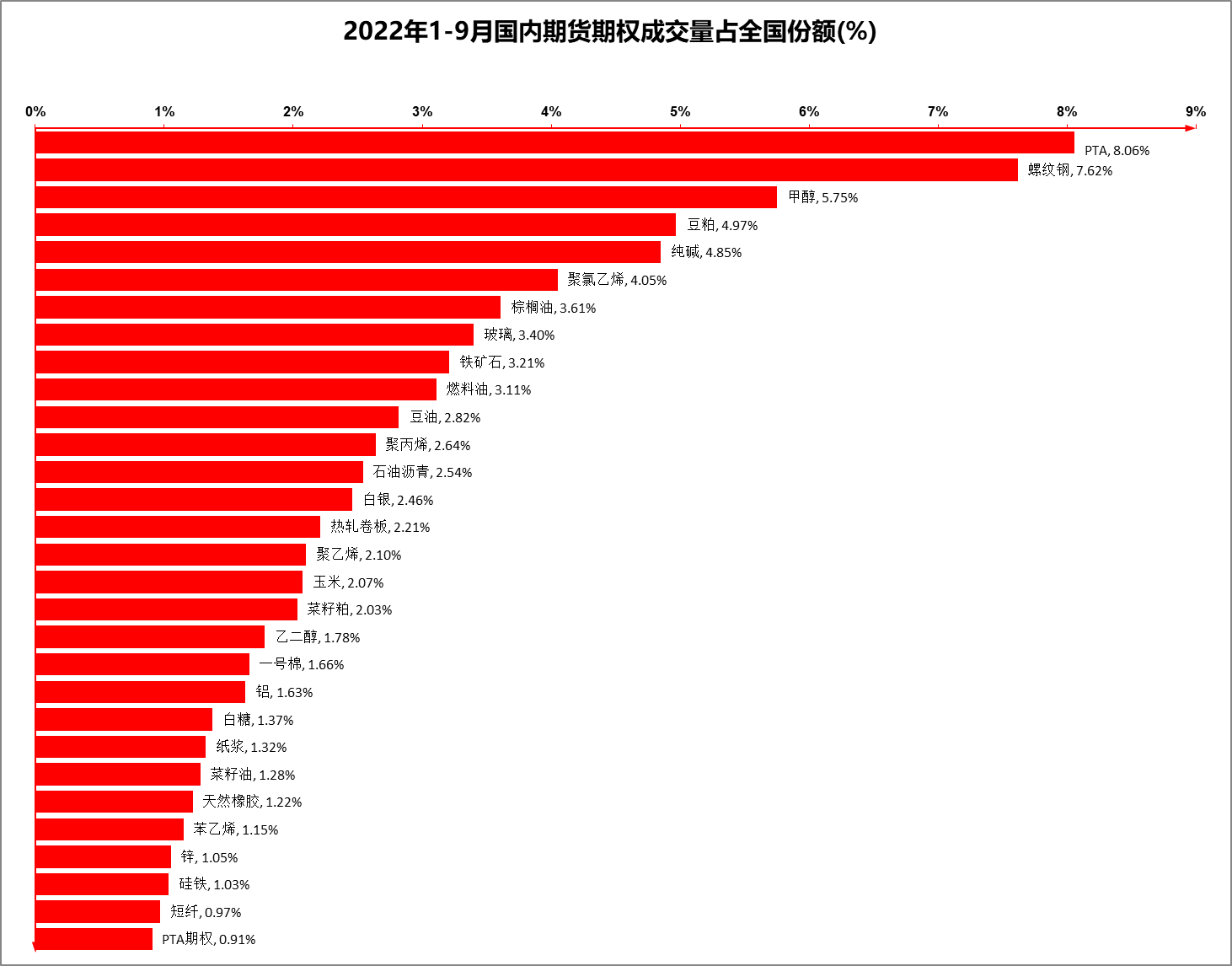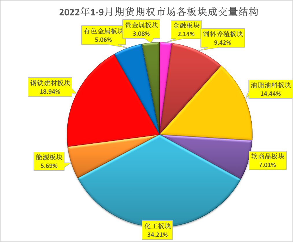 图:2022年1-9月期货期权市场九大板块成交量占比统计