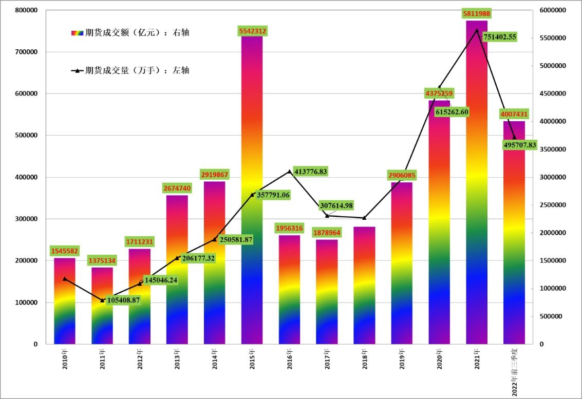图:2010-2022年我国期货期权市场成交规模年度变化