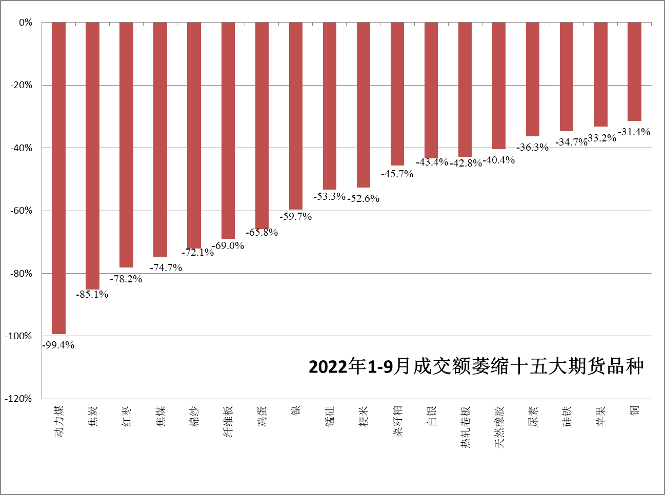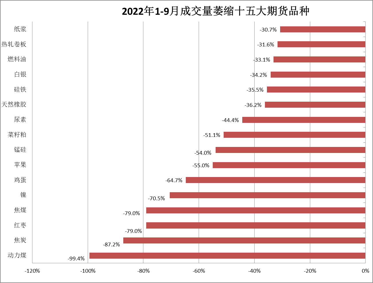 图:2022年1-9月成交量萎缩前十五大期货品种