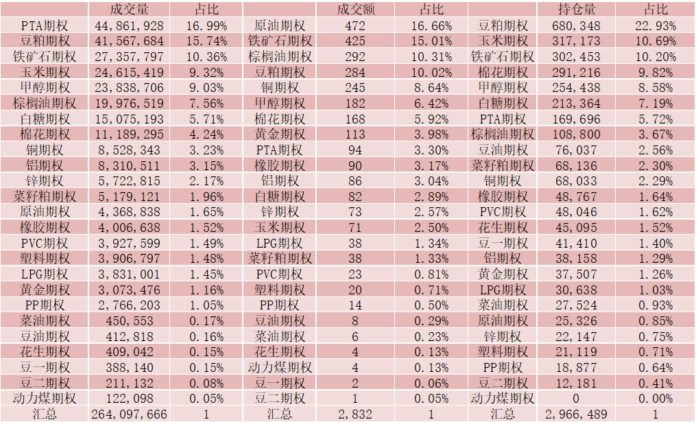 表2:2022年前三季度商品期权成交持仓情况统计(单位:手,亿元)