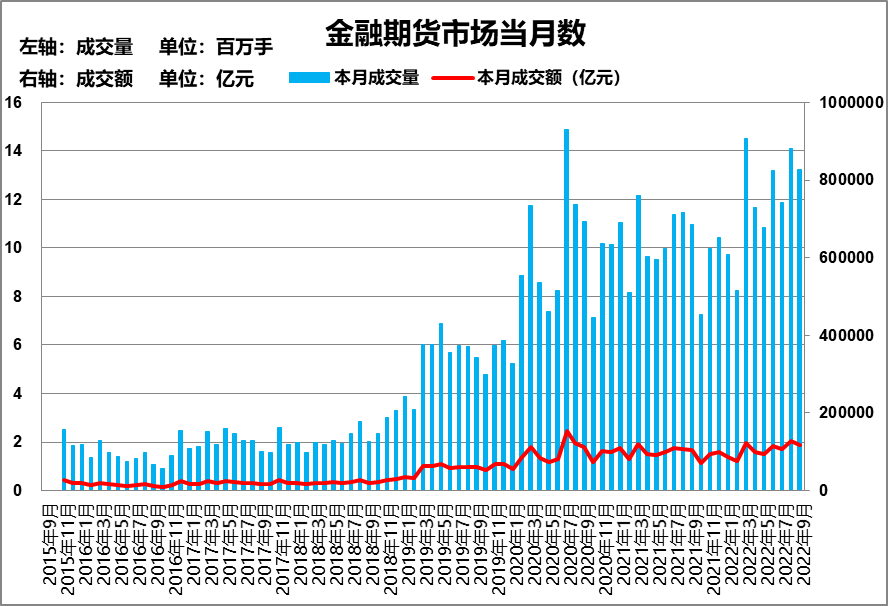 图:2015-2022年我国金融期货期权市场月度成交规模变化