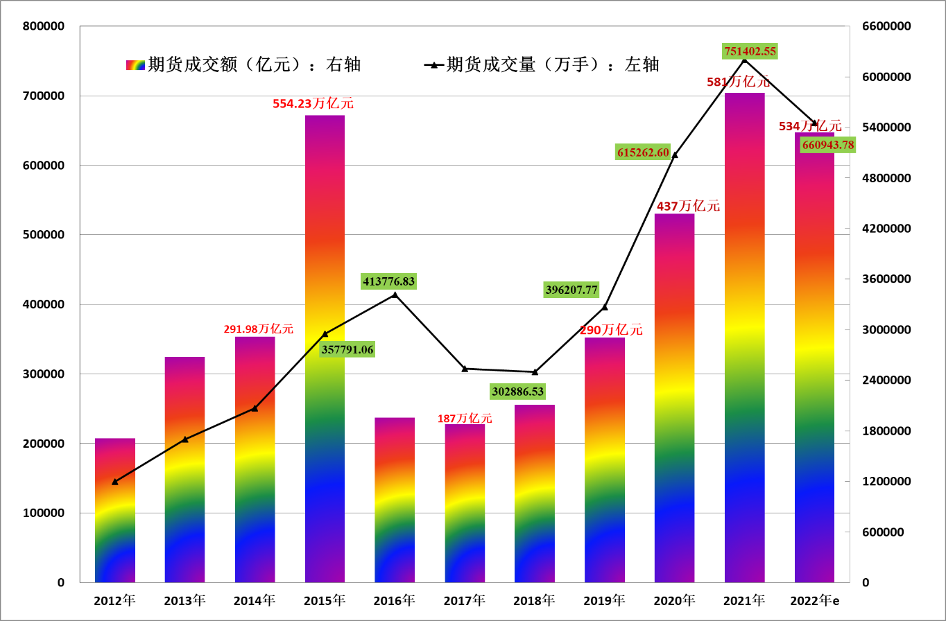 因为欧美持续大幅加息、全球性高通胀、“黑天鹅”事件频发及地缘冲突升级,促使实体企业、金融机构和投资机构积极进入国内期货期权市场进行风险对冲,以及加强原油化工、贵金属、有色金属和农畜产品等品种的资产配置,从而为今年全年期货市场交易规模“转正”奠定了坚实基础。