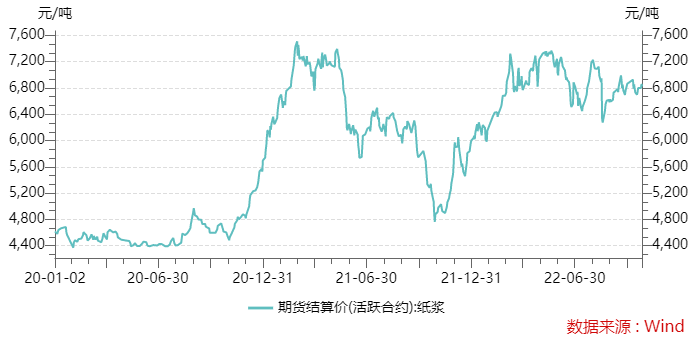 今年,纸浆价格持续处于历史高位。二季度以来,纸浆期货价格在6800元/吨上下震荡,两年前这一价格在4500元/吨左右。广发期货数据显示,本周纸浆现货价格报价在7400元-7800元/吨。