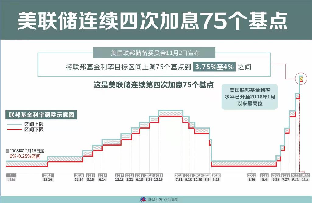 美国联邦储备委员会本月2日再次宣布加息75个基点。自今年3月以来,美联储已连续6次加息,美国联邦基金利率水平升至2008年1月以来最高位。美联储激进加息,美元急剧升值,在全球范围产生严重破坏性后果,令不少国家本币贬值、资本外流、偿债成本上升、输入性通胀加剧,一些国家甚至陷入货币或债务危机。