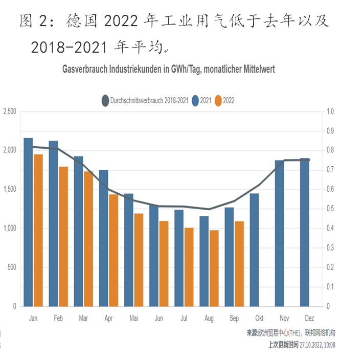 德国以高端制造著称,引领欧洲经济,这背后重要原因之一是俄罗斯的廉价能源供应。俄乌冲突使德国失去了近1100亿立方米/年的俄罗斯天然气供气量,占2021年德国天然气消费量的122%(德国没有LNG接收站,全依赖管道进口天然气)。由于天然气供应下降,德国不得不削减工业用气量,以确保居民用气需求。德国在俄乌冲突前天然气进货量约在4.7亿立方米/天(包含过境天然气约2亿立方米/天),其中约1.7亿立方米/天来自俄罗斯。俄乌冲突后目前天然气进货量约在3.2亿立方米/天,如果北溪1号持续不通气,德国比正常水平持续差1.5亿立方米/天的供气量,工业用气将最先承受这部分用气短缺。