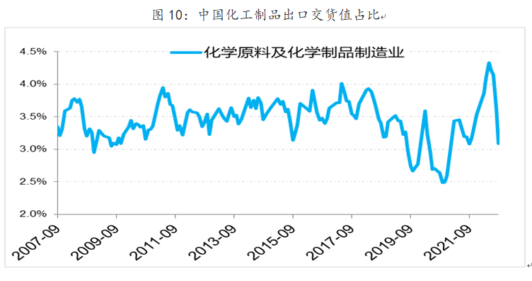 实际上,从出口结构上我们也能看到中国化工材料的出口在快速增长,在全球占比也在不断提升(下图)。拿具体材料TDI/MDI来讲,过去这一材料技术被日德等国家垄断,国内以万华化学为代表的公司经研发取得技术突破,2021年万华化学公司是全球最大的MDI供应商和全球第三大TDI供应商,国外收入占比已经占49%,万华化学公司产品正在走出国门,走向世界。