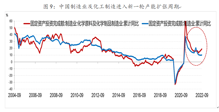 另外,当前中国制造业正进入新一轮产能扩张周期(所谓10年一次的朱格拉周期),资金快速投入高端制造,将支撑化工新材料等产业发展。支撑这一轮制造业产能扩张周期的需求包括“碳中和”、新能源车、绿色可再生能源发展,这一点需要特别关注。
