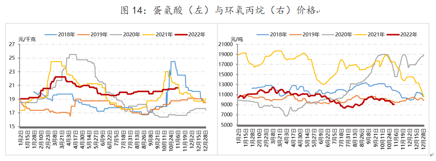 欧洲天然气紧张造成产成品产量影响还包括蛋氨酸、抗老化助剂、环氧丙烷等。2020年欧洲蛋氨酸产能占比接近30%,抗老化助剂产能占比约30%~40%(主要集中在巴斯夫)、环氧丙烷的产能占比则约为25%。近些年,中国蛋氨酸、抗老化助剂的研发与产能扩张上稳步推进,主要企业包括安迪苏、新和成、利安隆等。