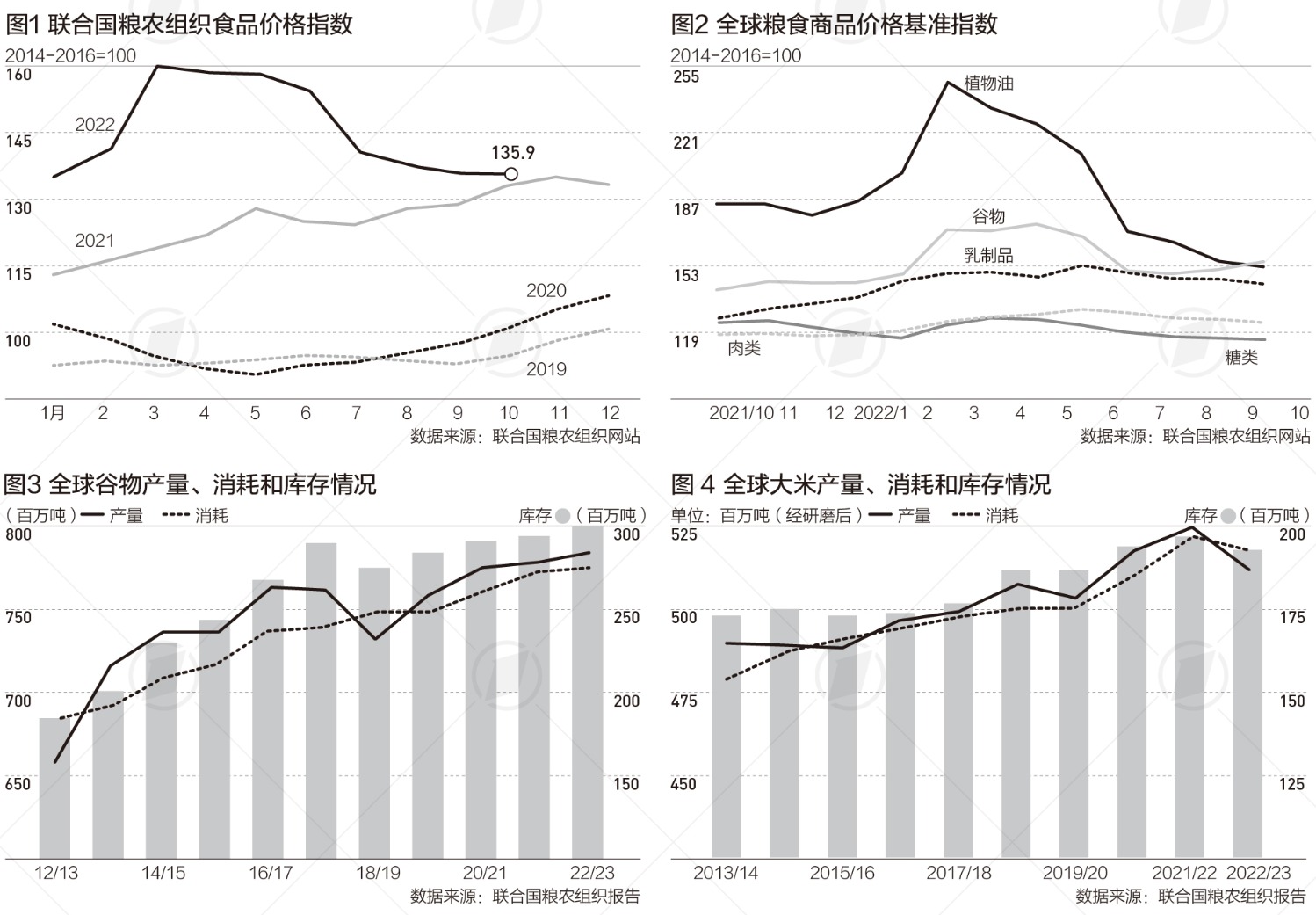 联合国粮农组织最新公布的数据显示,粮农组织食品价格指数(FFPI)10月平均为135.9点,与9月基本持平,较今年3月的历史高位下降14.9%。今年3月,受俄乌冲突影响,这一指数一度触及160点。