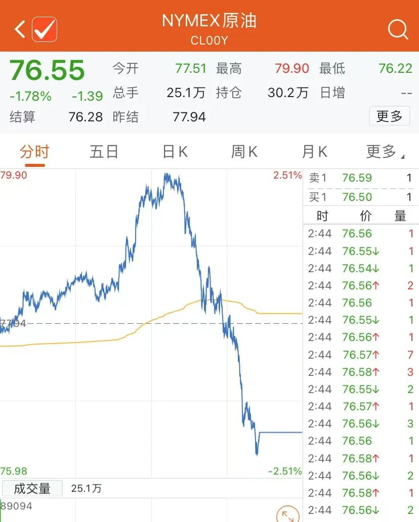 截至北京时间26日2:30,WTI 1月原油期货收跌1.66美元,跌幅2.13%,报76.28美元/桶,本周累计下跌4.78%。