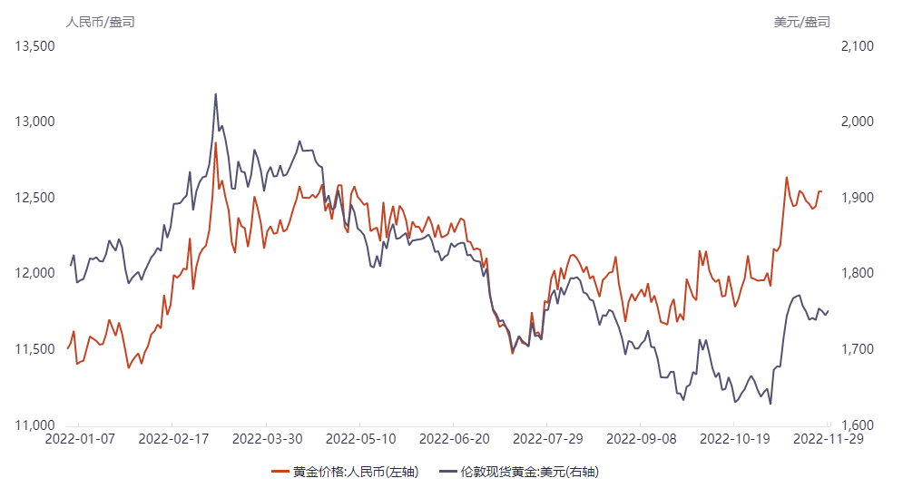 以人民币计价黄金和以美元计价黄金对比