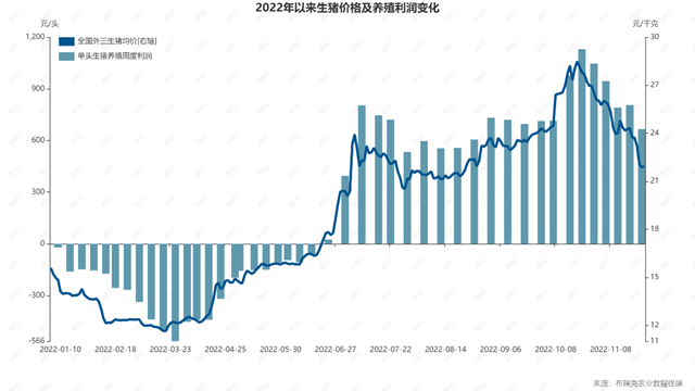 辛辛苦苦3个月,相较不足2个月,净收益反倒下降近七成。李大壮的遭遇,是今年9月至今猪价走势的一个缩影——近期猪价上涨始于9月底,每公斤24元,仅过20多天,10月20日左右就涨至28.4元。随后开始下跌,进入11月,更是跌速快、跌幅大,跌至目前的22元左右,跌幅超过20%。在跌破起点的同时,成为最近小半年的低点。