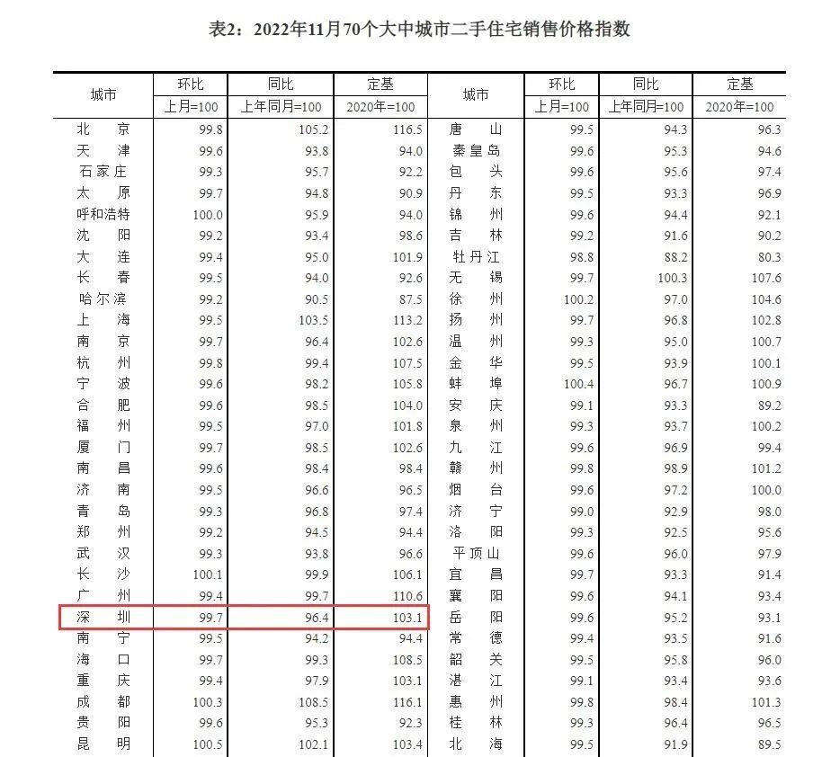 这其中,11月深圳新建商品住宅价格指数,环比下跌0.5%,二手房价格环比下滑0.3%。深圳新房价格指数连续6个月下跌,跌幅环比缩小呈上扬趋势。而二手房价指数持续下探,连续7个月下跌,11月跌幅环比扩大。