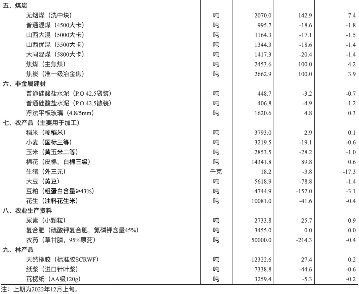 2022年12月中旬流通领域重要生产资料市场价格变动情况