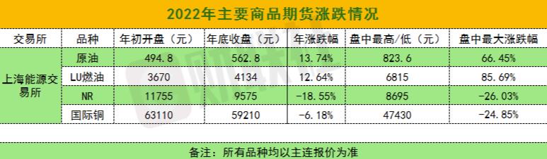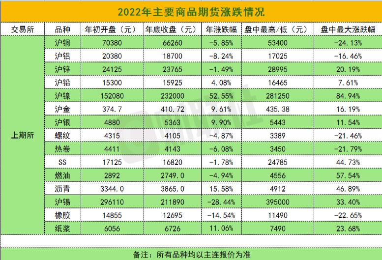 2022年主要商品期货涨跌情况:沪镍涨超52% LU燃油、沪镍年中一度涨约85%