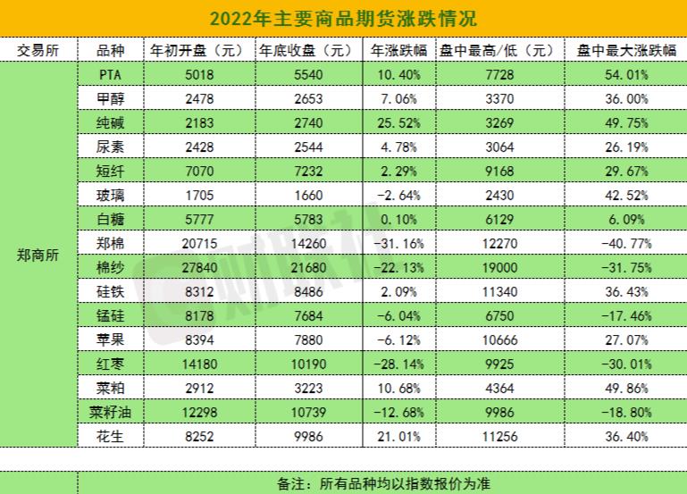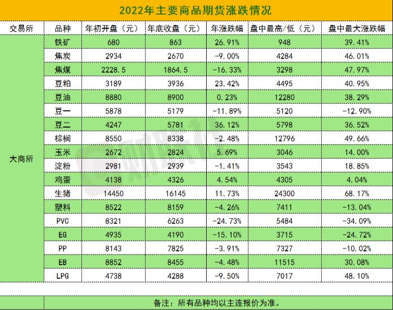 2022年主要商品期货涨跌互现,部分品种振幅较大。