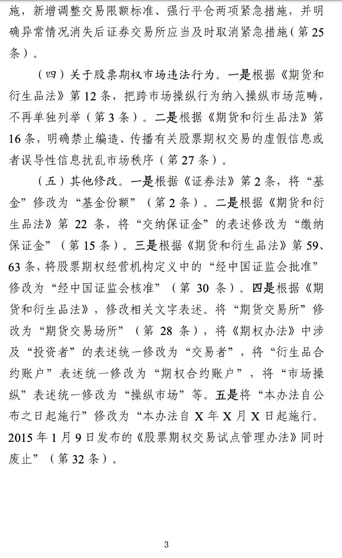 为贯彻落实《中华人民共和国期货和衍生品法》要求,我会配套修订《股票期权交易试点管理办法》,现向社会公开征求意见。公众可通过以下途径和方式提出反馈意见: