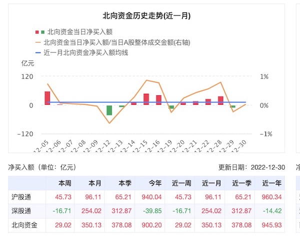 2022年,北向资金总流入量定格在900.2亿元,这仅是2021年近4000亿元北向资金流量的1/4不到。不过,去年四季度以来流入量显著加速,光是12月就贡献了350亿元,疫情政策的优化调整是催化剂。