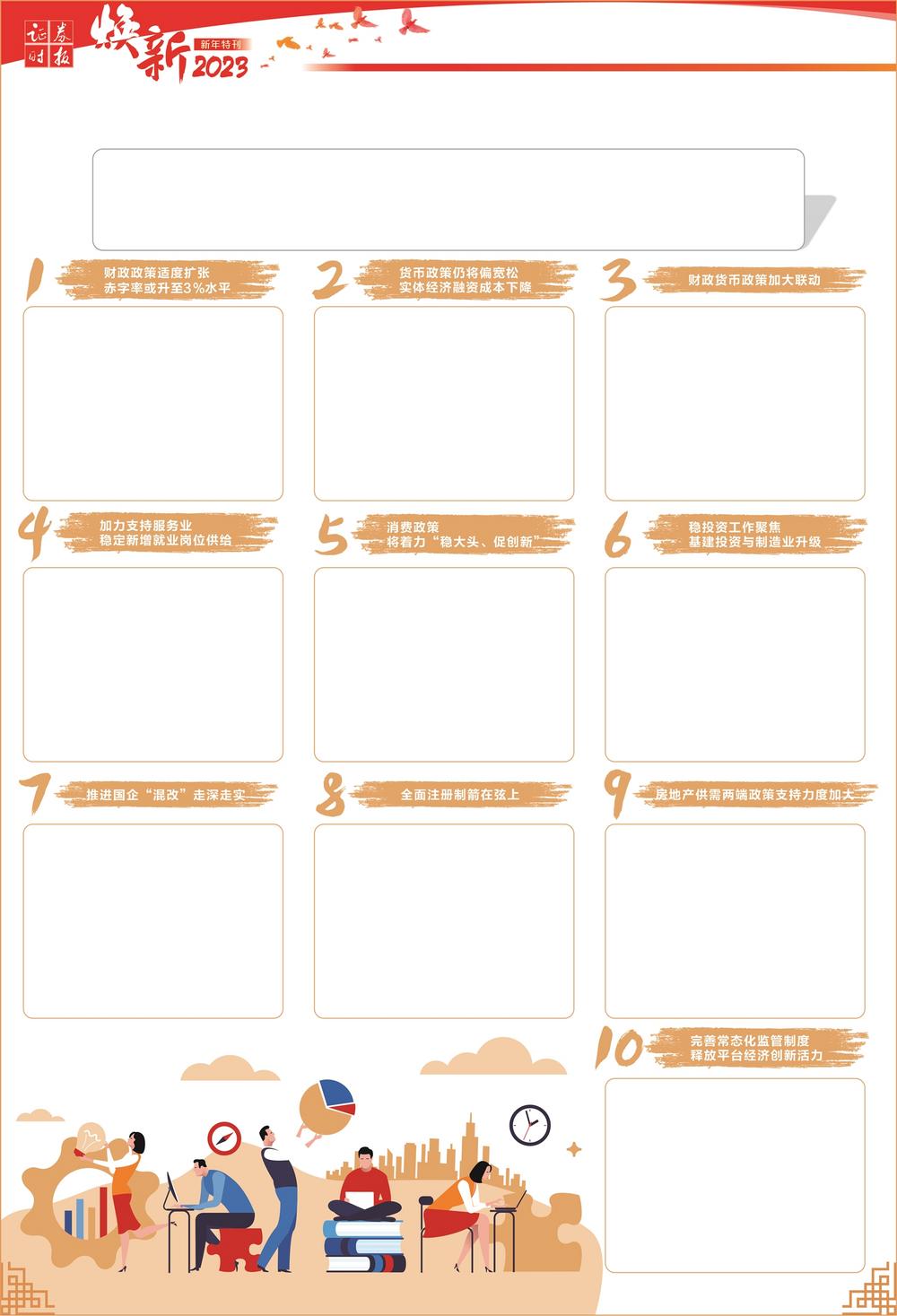 2022年,面对风高浪急的国际环境和艰巨繁重的国内改革发展稳定任务,我国经济社会发展大局保持稳定。当前,我国经济运行仍面临不少风险挑战,经济恢复基础尚不牢固,经济社会风险点增多。不久前召开的中央经济工作会议提出,2023年要推动经济运行整体好转,实现质的有效提升和量的合理增长,为全面建设社会主义现代化国家开好局起好步。新的一年来临之际,证券时报推出2023年宏观政策十大看点,邀您一道畅想新年宏观政策着力点。