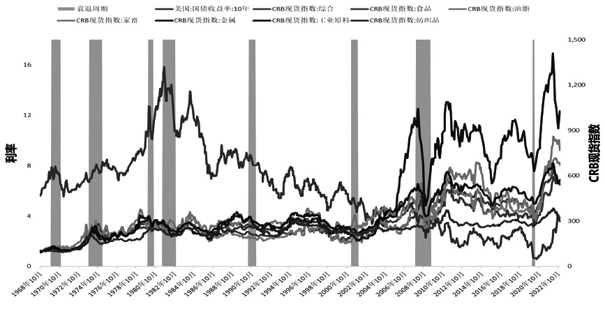 图为大宗商品、美债与衰退时期
