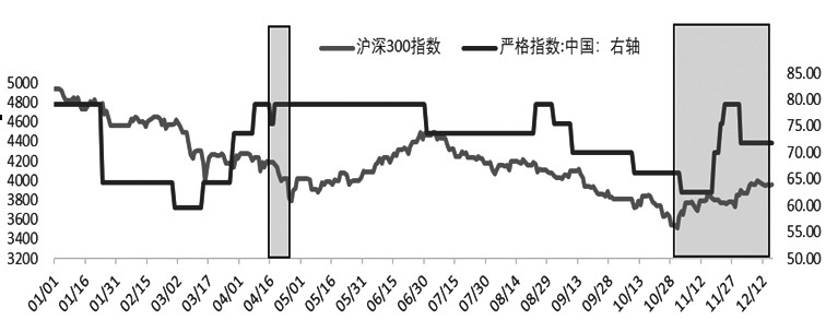 图为沪深300指数与严格指数走势