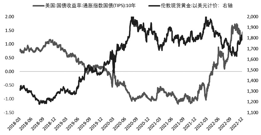 图为黄金价格与实际利率走势呈现较强的负相关性