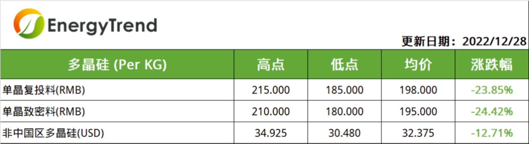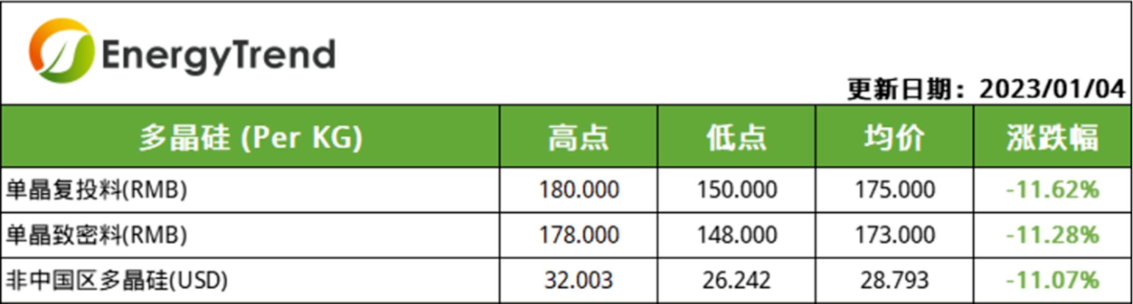 随着产业链价格趋稳,Q1海外和国内终端光伏项目也将逐步启动,叠加春节备货等需求支撑,硅料市场成交活跃度有望提升,积压库存也随之日渐消化,硅料价格跌幅和跌速都将逐步放缓。