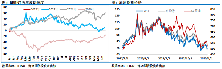 除了需求层面成为影响油价的重要因素,新年第一周宏观层面也再次给市场带来影响。对于美联储加息预期的判断,引发美元先扬后抑,并对全球风险资产形成了明显的影响。周五夜盘公布的非农数据尽管新增22.3万个就业岗位,超过预期,但就业增长放缓的趋势很明显,2022年上半年的月度就业增长通常在30万人以上,2022年12月的22.3万人是自2021年4月以来最弱的数据。此外,受到密切关注的工资数据也弱于预期。2022年12月平均时薪增长0.3%,低于前值的0.4%,也低于预期的0.4%。这改变了市场之前强化的加息预期,市场猜测此数据可能足以让美联储开始注意到,其在2022年的快速加息显然正在对经济产生放缓影响,美元最终出现了大幅回落,市场加息忧虑消退,风险偏好回升,风险资产纷纷上扬。但油价在宏观及自身需求担忧的博弈下,最终还是回吐了日内涨幅,以弱势收盘。