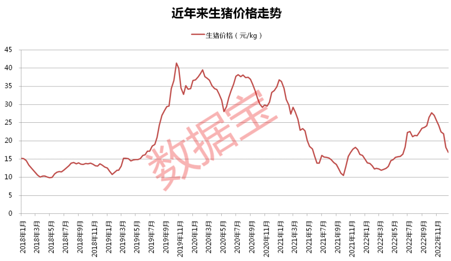 国家统计局数据显示,2022年12月下旬流通领域重要生产资料中生猪(外三元)最新价格为16.8元/千克,环比12月中旬下降1.4元/千克,降幅达到7.7%。自去年10月下旬以来,生猪价格已连续7期下降,目前已低于猪肉储备调节预案确定的6:1合理区间下限。按历史数据来看,2017年以来历年12月、1月生猪价格均值分别为22.08元/千克、22.18元/千克,最新价格较历史平均水平下降20%以上。