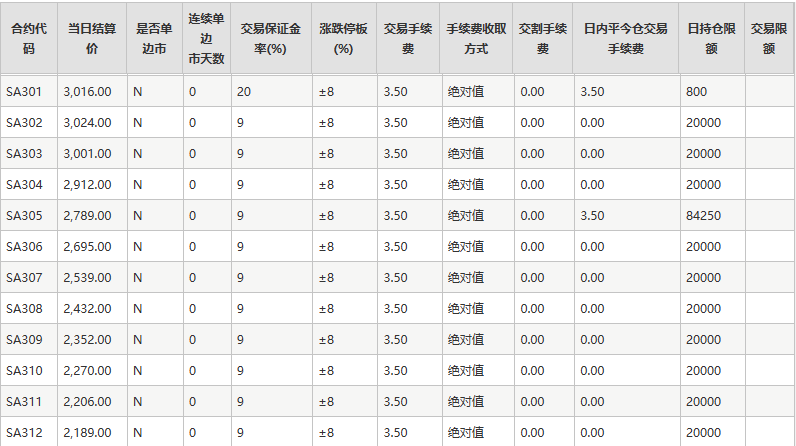 根据《郑州商品交易所期货交易风险控制管理办法》第九条及《郑州商品交易所期货结算管理办法》第二十七条规定,经研究决定,对纯碱期货部分合约的交易保证金标准和交易手续费标准作出如下调整: