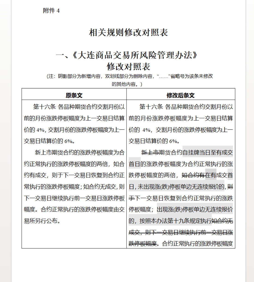 附件4:相关规则修改对照表