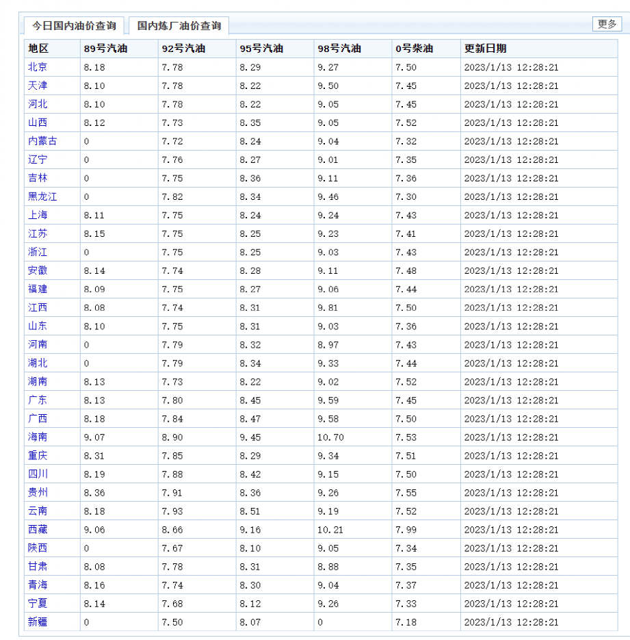 值得一提的是,1月3日,国内成品油刚刚完成2023年的首次涨价。国家发展改革委称,根据近期国际市场油价变化情况,按照现行成品油价格形成机制,自2023年1月3日24时起,国内汽油、柴油价格每吨分别提高250元和240元,折合成升价为上调0.19元/升至0.21元/升。