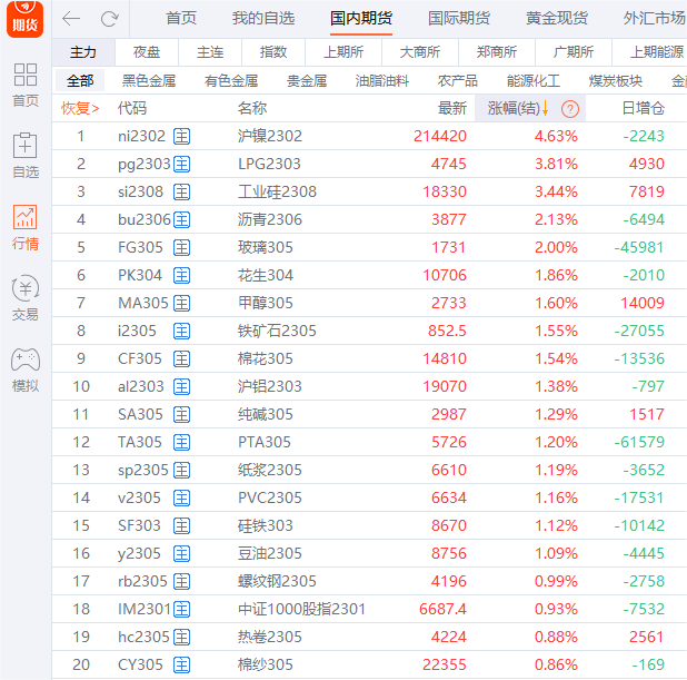 原标题:国内商品期货多数收涨 沪镍涨超4%
