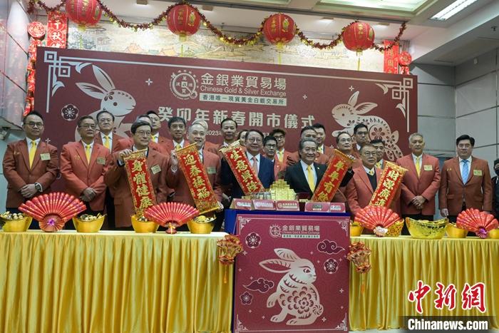 香港金银业贸易场26日举办新春开市仪式。金银贸易场理事长张德熙表示,预期今年首季黄金初步可挑战每盎司2000美元,对香港在兔年的前景充满信心。