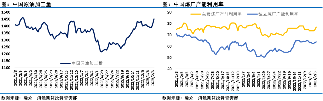 相对于欧美市场缺乏亮点的表现,中国带来的需求恢复正处于逐步证实阶段。高频数据显示,中国原油周度加工量接近两年来高位,复工需求让中国市场保持强势,并会在接下来一段时间继续作为市场主要驱动。OPEC伊朗代表在印度班加罗尔举行的印度能源周活动上表示,预计中国需求复苏,然而供应仍然有限,油价可能涨至每桶100美元,相当于目前国际原油期货价格上涨20%左右。
