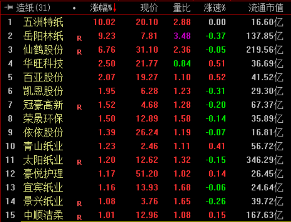 2月22日午后,造纸板块走强。截至发稿,五洲特纸涨停,岳阳林纸接近涨停,仙鹤股份、凯恩股份、宜宾纸业、太阳纸业等跟涨。
