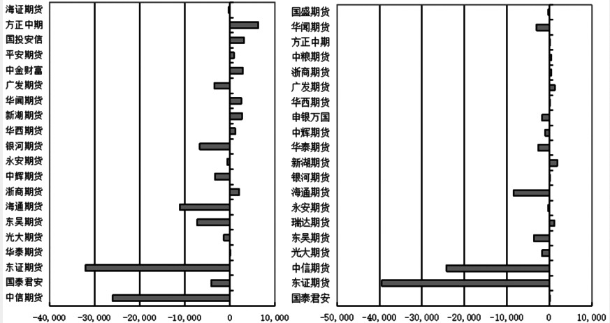空头前20席位中,减持空单的席位有9家。其中,减持数量超过10000手的有2家,分别为东证期货席位和中信期货席位,分别大幅减少39432手和24226手。另外,减持数量介于1000手至10000手的有5家,分别为光大期货席位、东吴期货席位、海通期货席位、华泰期货席位和申银万国期货席位,分别减少1724手、3677手、8393手、2642手和1717手。剩余2家席位减持数量不足500手。