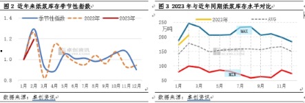 2023年2月纸浆库存和浆价的走势背离了季节性规律:价格重心一降再降,国内偏弱预期对市场的主导作用更为明显。展望后市,由于阔叶浆新增产能相继投产,同时欧洲港存水平较高,预计中国3-4月阔叶浆抵港预期带来的影响下,浆价下行趋势不改。