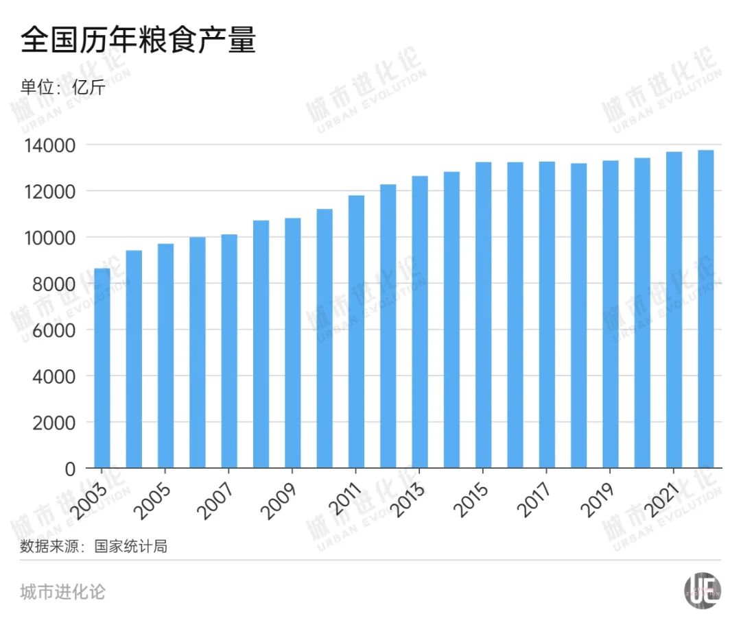 早在2009年,我国就曾发布专项规划,提出全国新增1000亿斤粮食产能。过去十多年间,我国粮食产量跨上三个千亿斤台阶,其中,从1.1万亿斤到1.2万亿斤用了2年时间,1.2万亿斤到1.3万亿斤用了3年,而从2015年突破1.3万亿斤至今,在这一台阶上已保持8年之久。