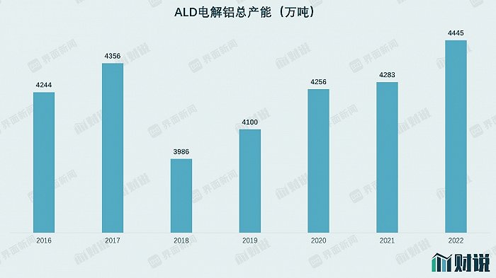 供给创历史新高并达到“天花板”。由于我国早前将电解铝列为过剩产能行业,因此相关电解铝产能提升实际是受到限制的。根据阿拉丁统计,我国电解铝行业合规产能的总天花板约为4500万吨,截止2022年底,我国电解铝总产能为4445万吨,创出历史新高,已接近产能天花板。