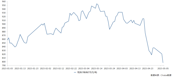 随着铁水产量开始下降,铁矿石价格二季度开始大幅下跌,目前日照港PB粉价格跌破800元/吨,铁矿石期货主力合约i2309价格也跌破700元/吨。