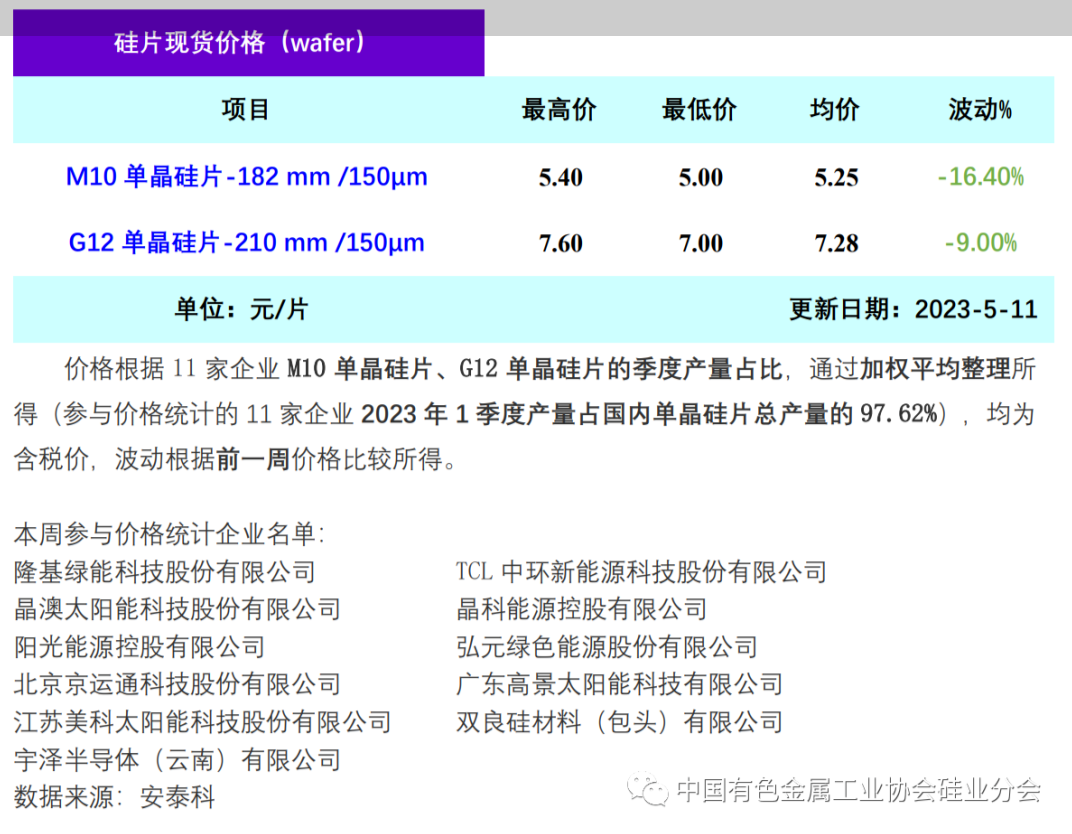 单晶硅片周评-传导降价释放利润 硅片价格扩大跌幅(2023年5月11日)