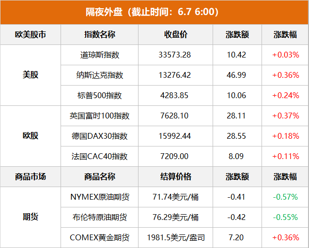 美股:标普500指数收涨10.06点,涨幅0.24%,报4283.85点,逼近2022年8月16日收盘位4305.20点。道指收涨10.42点,涨幅0.03%,报33573.28点。纳指收涨46.99点,涨幅0.36%,报13276.42点。