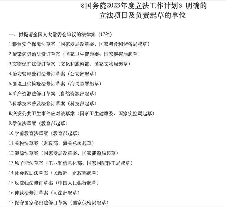 6日,国务院办公厅公开了国务院2023年度立法工作计划,明确今年提请全国人大常委会审议关税法草案。预备提请全国人大常委会审议消费税法草案、税收征收管理法修订草案。