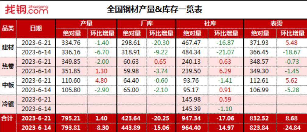 ①建材产量334.76万吨,周环比减1.40万吨,降0.42%;年同比减32.42万吨,降8.83%。