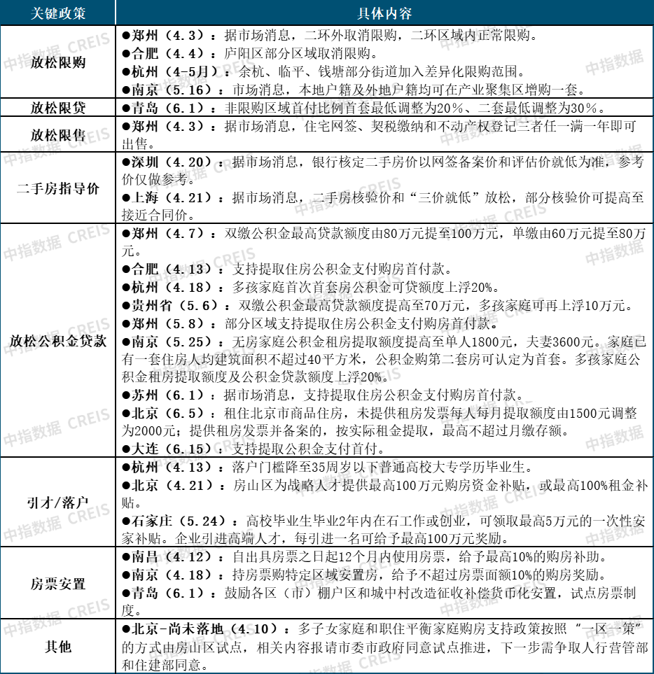 中指研究院报告显示,当前多数城市限制性政策已取消,随着二季度市场持续转弱,下半年政策加力预期增强。