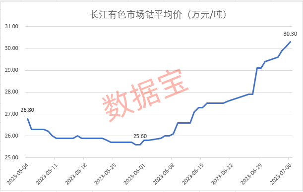金属钴6月以来价格大幅反弹,并重新站上30万元/吨的大关。