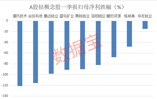 受钴价走低影响,A股中主要钴企业绩不佳。龙头华友钴业一季报净利为10.24亿元,同比下降15.1%;扣非净利为9.96亿元,同比下滑16.32%。寒锐钴业一季报净利和扣非净利均同比下滑超80%。腾远钴业下滑幅度更大,一季报两项指标下滑幅度均超过90%。